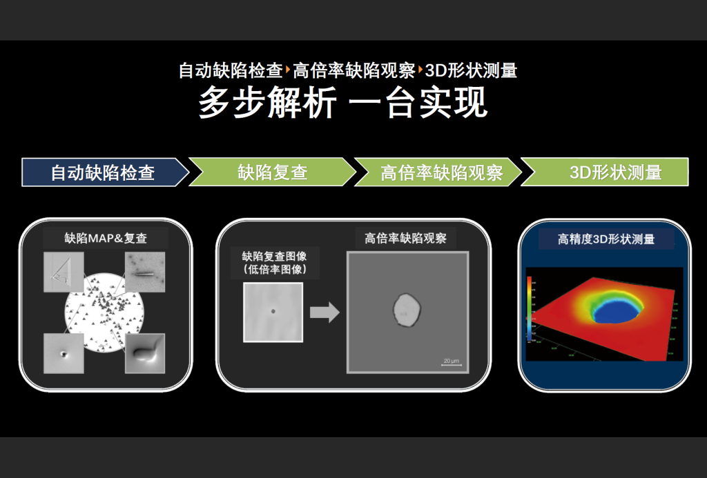 新品发布 OPTELICS AI² :晶圆自动缺陷检测系统 → 高倍率缺陷检查 → 一机无缝实现 3D 形状测量;基于共焦光学与微分干涉干涉技术原理,晶圆缺陷检测仪可各种材质半导体晶圆的高速自动缺陷检测,Si晶圆、SiC晶圆、GaN晶圆、InP晶圆、AlN晶圆、玻璃晶圆的缺陷检测,玻璃基板、薄膜等;。