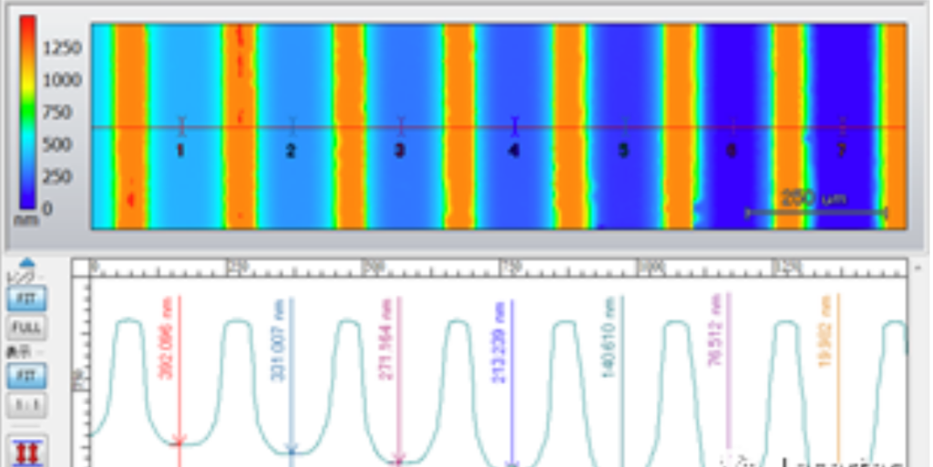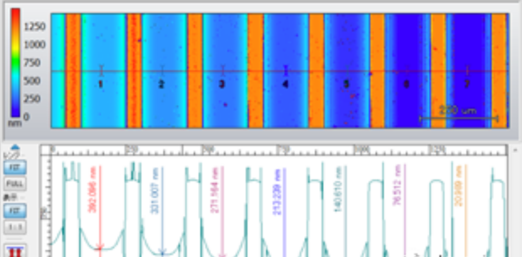 对于此类测试需求;当基板是Si晶圆或玻璃等平面的场合,可认为由膜厚能够推导出表面形状。以此方法,即可用低倍宽视野镜头快速测出几十nm的膜厚差异。