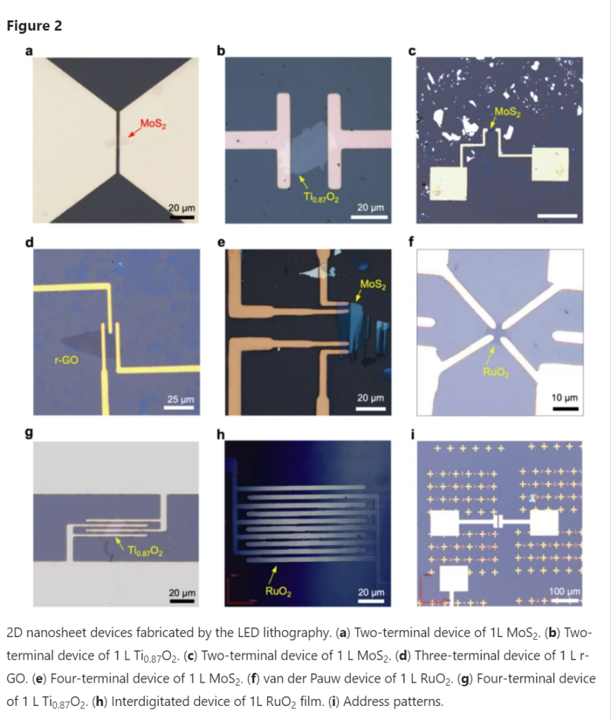 通过 LED 光刻技术制造的 2D 器件的几个示例如下图;