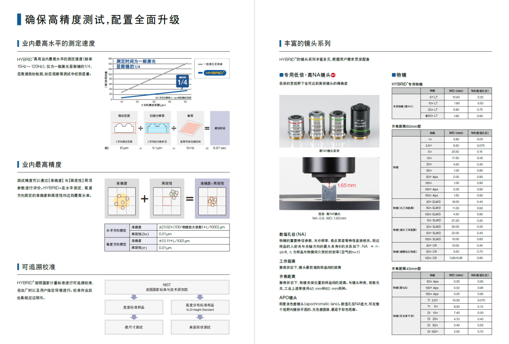 | 测定精度(高度方向) | 准确度:±{0.02x(100/物镜倍率)+L/1000}μm |